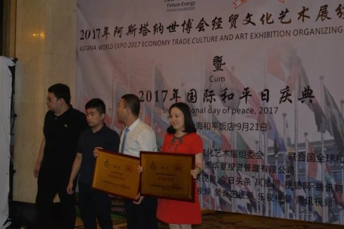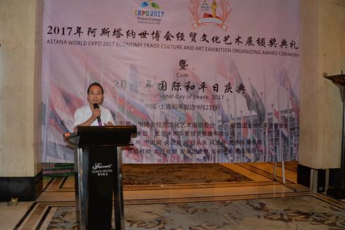 2017年9月21日下午,阿斯塔納世博會經貿文化藝術展頒獎典禮在上海和平飯店隆重舉行。上海市原副市長劉振元致辭、阿斯塔納世博會經貿文化藝術展組委會主席蔣位卿,組委會秘書長謝有玲發表致辭,哈薩克斯坦駐滬總領事克拉把葉夫·佐齊漢、世博會館長與總代表聯盟全球副總裁王慧、聯合國國際信息發展組織Arsenio?Rodniquez主席專程從美國趕到現場,對“一帶一路,共建繁榮”高峰論壇在阿斯塔納世博會成功舉辦和參展企業在世博會上的精彩亮相表示祝賀、世界和平策進總會發展委員會主任歐陽振東、中非經貿投資促進會會長劉峻杰、江蘇省駐滬辦副主任趙順興等200多位來自美國、意大利、西班牙、緬甸、香港嘉賓參加了典禮活動。 畫家常要穩發表感言,榮獲2017阿斯塔納世博會經貿文化藝術展特別榮譽獎。